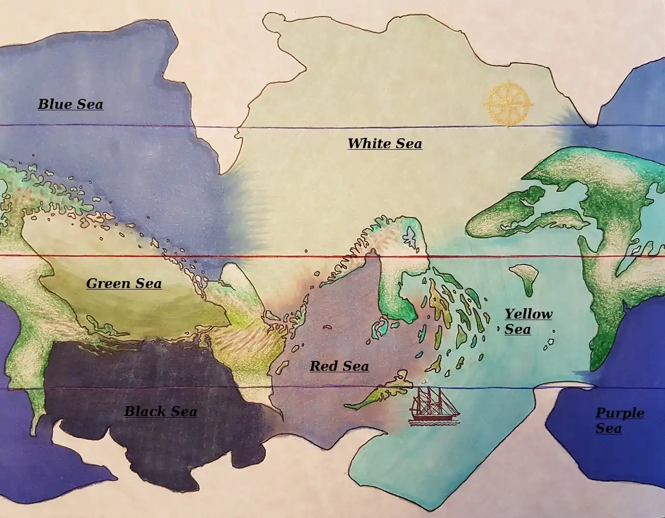 The Quona hail from one of the smaller continents at the farthest Southern tip of the mega-coral barrier between the red and yellow seas. Because their diets consist almost entirely of seafood, and the red sea is red due to the creatures which live in it, most Quona have bright red skin. If a Quona grows up eating a more normal diet, they will have normal-colored skin. The creatures of their landmass use disorienting high-volume, high-frequency noises to stun their prey. The people have adapted to have incredibly small ears, flattened against their heads, to the point of almost not having ears. They can hear most sounds in the normal speaking frequencies, but higher pitched sounds are outside their range.