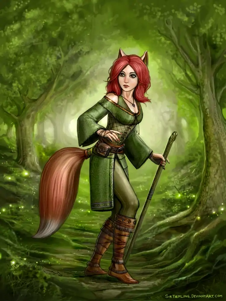 As a vulpine canibri, you descend from reclusive forest dwellers. Your non-human characteristics (e.g. tail, ears, and eyes) are akin to that of a fox. Your hair may be red, white, brown, or something in between.