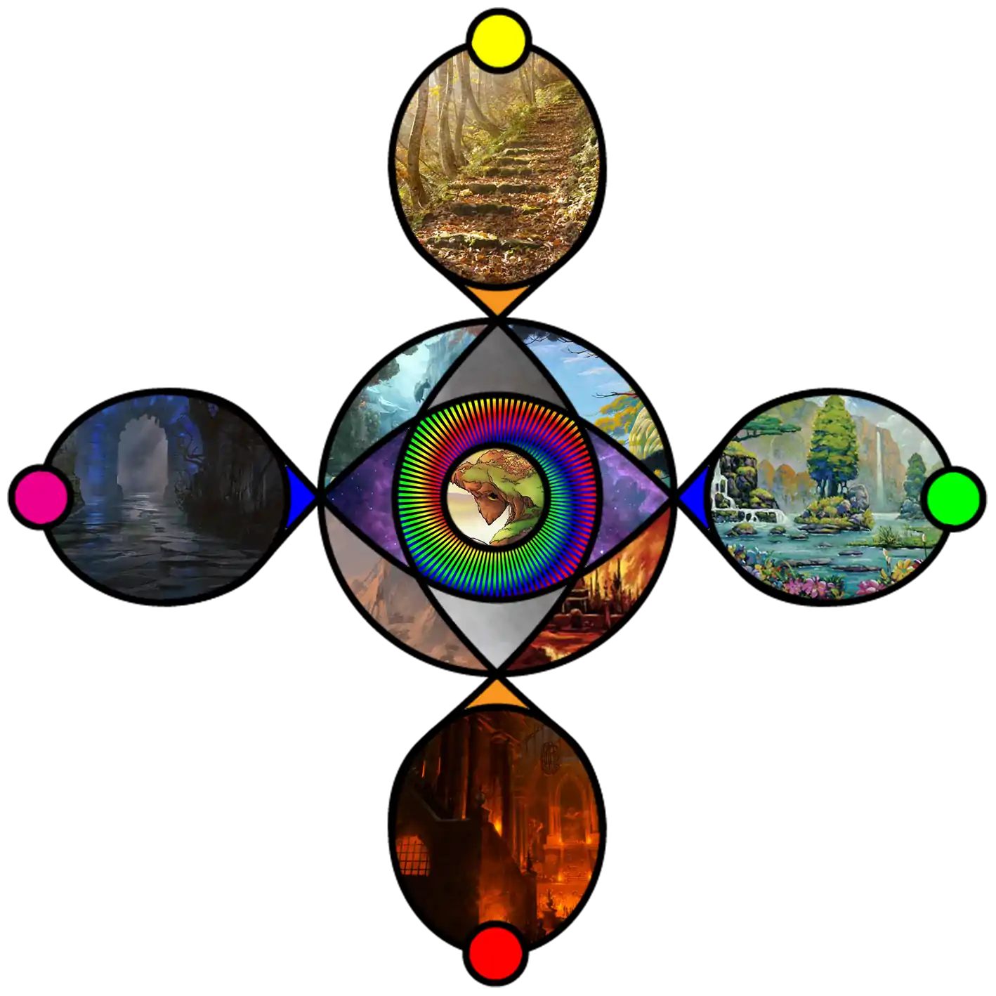At the absolute center of these currents is the material plane. The flow mingles here, spreading out and intermixing its currents, making the life and magic that people have come to know possible.