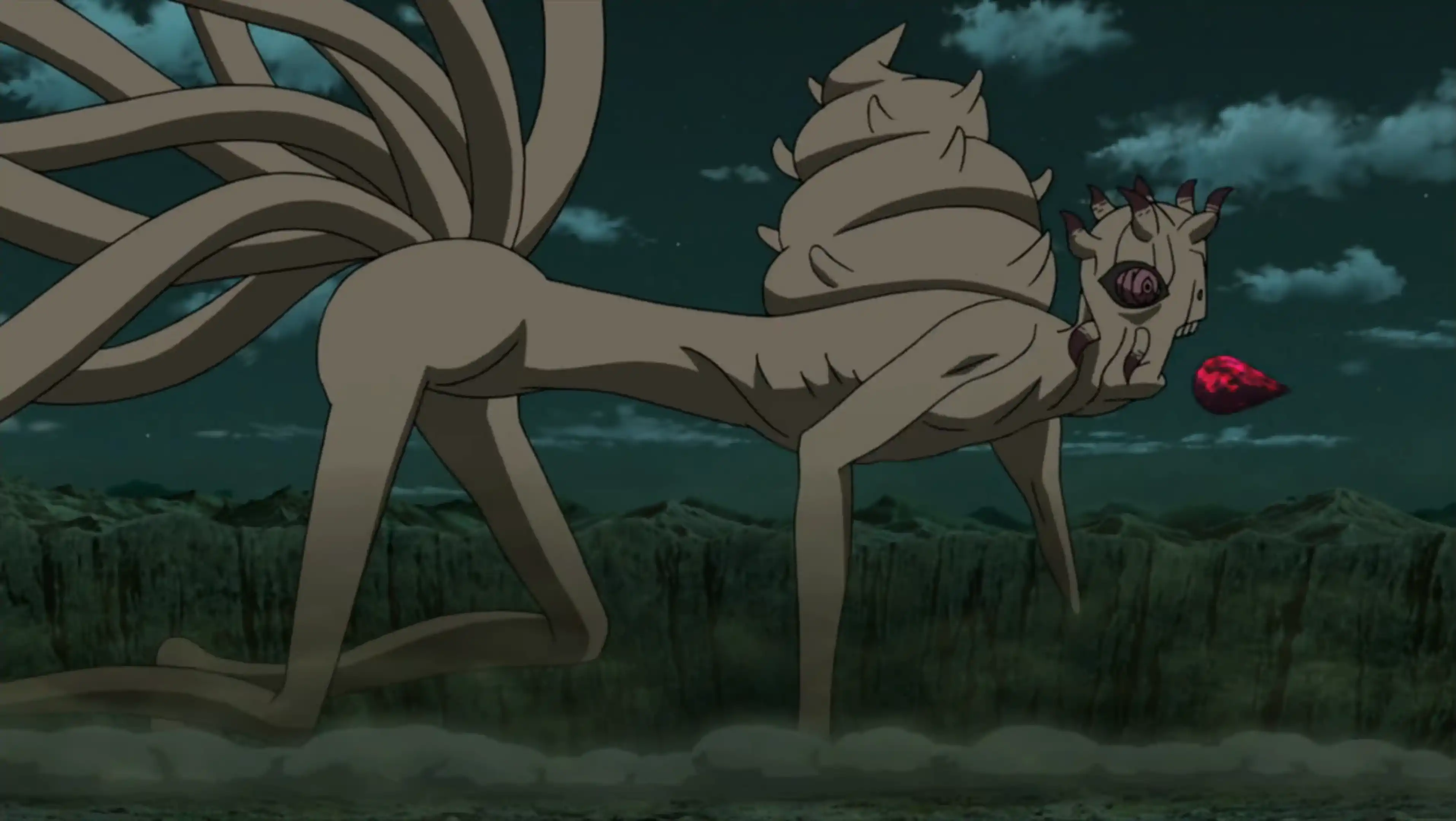 Datara, the original Tailed Beast, hardly resembles the princes it once was. With no ideals, no emotions, it exists solely to destroy. While the all-seeing eye remains, its body undergoes an intense transformation from its Initial form to an emaciated, humanoid figure. If allowed to exist for an extended period of time, it transforms into its final, true form |