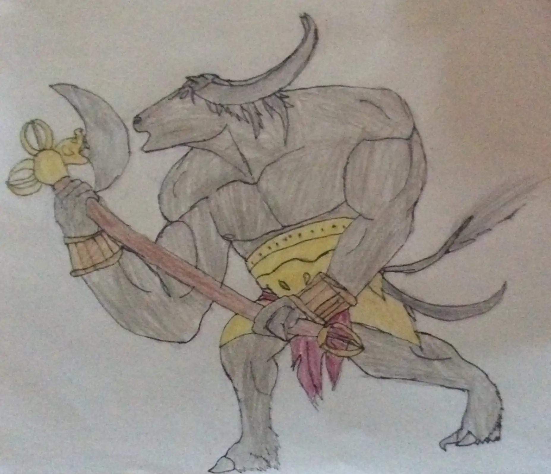 The minotaurs are known to be beasts of pure evil and primal rage, being manifested by demonic rites. Naturally one would think these monsters irredeemable, but every so often one or more minotaurs reject their demonic creator disgusted at what they've become. These souls are known as the dhaal and take the fight for good specifically against their evil kin. Caging the Beast. Dhaal are everything minotaurs are not: they despise those who defy the natural order of things, such as demonic ritual, and actively protect those who are ravaged by their malicious brethren. Above all else, the dhaal seek redemption; redemption for all the evil deeds they did as minotaurs, redemption for those who they killed, redemption for the loved ones they blatantly abandoned. To do these, they must summon celestial entity to hear their plea and take them on as their warrior. This normally goes very poorly, as minotaurs are not well liked among celestials. However should the prayer be heard and accepted, they will mold them into a new being; their head and horns form to those of a water buffalo and they gain new power and a new title; kshatriya. Noble Kshatriya. The dhaal take their new name and title to wear as badges of pride. With their new found powers, they do furious battle against the children of the Horned King. They despise the minotaurs and everything they stand for; death and chaos. The hunt down their former brothers and sisters, some even their own parents, with no mercy, no sympathy, no regrets. This is their life; they may procreate and spread each other's progeny as minotaurs do, but above all else, they must fight. That is their one purpose in life, to fight evil and never look back. |