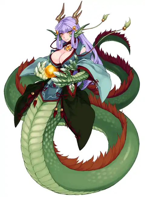 Eastern dragon lamia are humanoid-like creatures with their torso and head more human-like with scales and claws, and maybe horns or wings. The horns on their heads are too small and dull to do any damage. Similar to Western Dragons, the scales on their long tails represent what type of element they are resistant to.