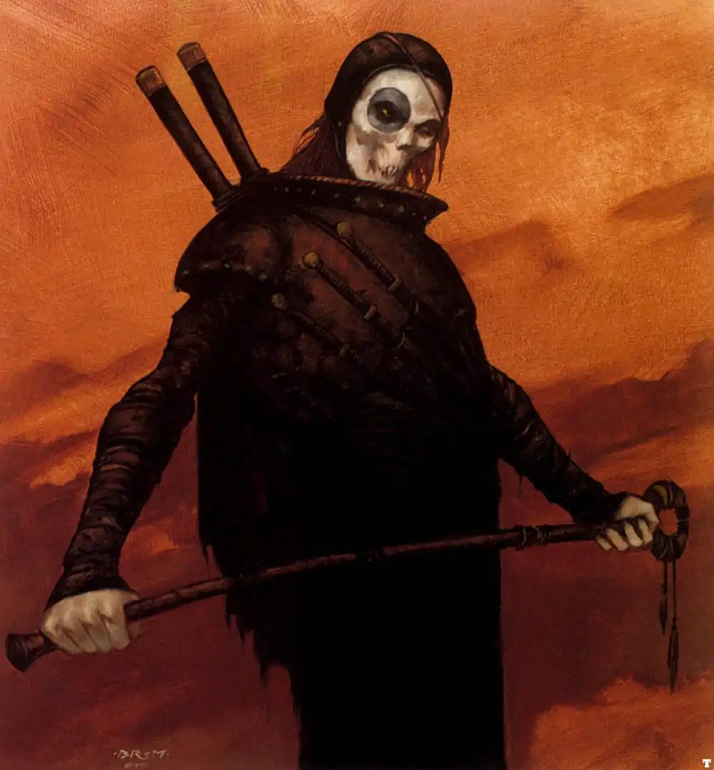 Furchtmen are strange, lean humanoids. They have a body that is often concealed under layers of clothing. The shape is humanoid, but it is said their bodes are dark like shadow. However, their face, hands and feet appear solid and are pale like ivory. Some have wispy hairs that hang from their head. These strands are slightly translucent, like strips of a black veil. The eyes of a furchtman are usually yellowish or orange with black irises and pupils. They like to wear dark clothing that is close to black if black is not available. On their white faces, they often decorate it sparsely with a small pattern or slight splash of color. This face is said to be nearly unmoving, like a mask, and many find it highly unnerving.