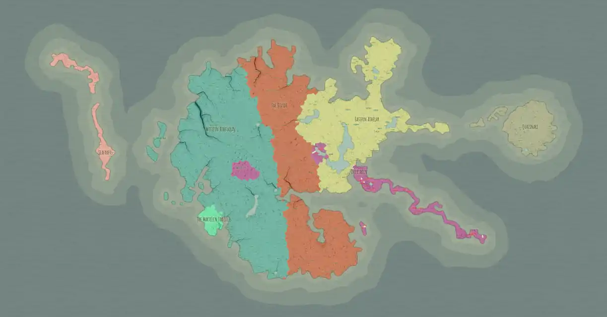 Darenfell is home to a few different continents, with no specific names except for the central one; Athelaran.