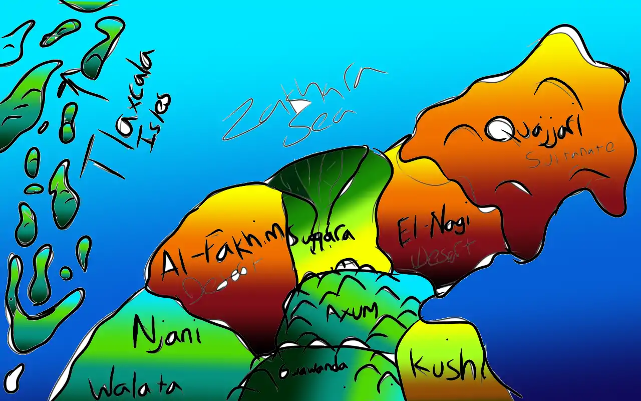 World of <!-Setting-> World Info The Great Subcontinent to the South and west is known as Gondwana while the lesser subcontinent to the North West is Xolteca. Both are tropical with great rainforests, savannah and exotic beasts like dinosaurs. Pyramids house vast dungeons constructed by powerful Pharaoh-Magi with their one strange laws of reality. History The History of the Gondwana Archipelago is divided into three stages with an elusive fourth stage said to be a period beforehand known as the Great Extinction... it is rumored that the Great Extinction is cyclical and could happen once again at the end of the Iron Age. The Great Extinction: This was a period were Gondwana was once a tropical paradise but suddenly obliterated with fire, ice and desertification... multiple species became extinct and various humanoid races were wiped from the face of Gondwana. Stone Age/Age of Wonders; This was the period that humans discovered the ancient world-stones and the transmuting magic of these monoliths changed people into the various new races over time.... hence the Amhara elves were born in the east, the Bantu dwarves were born in the west and the Twa halfings were born in the central rainforests. The Great World-stones also preserved many of the Dinosaurs from the great extinction that happened previously. The Forests expand and the land swiftly recovers within a few centuries... relics and ruins from the previous age can be found throughout the land. Some Neolithic cities are built and magic is mastered in this period. Pyramids are being built in this pyramid but are somewhat crude. Bronze Age/Wind Age; Humans, Bantu, Amhara begin building great kingdoms throughout the land. The Twa begin to learn how to domesticate the dinosaurs in the great regions of Gwongo, Txalacala and Zolteca. The Gods of Suqqatra can occaisonally be found on earth in their avatars, battling amongst themselves or forming alliances..etc. The Great Wizard colleges is constructed in the lands of Quajjari and Suqqatra. Zoros the prophet becomes the leader of Quajjari pantheon and converts the gods and spirits to pay respect and fealty to the greater God Ashyuran. This is also a great period of massive hurricanes and typhoons which spill across from the Tlaxcala seas. Zolecta rises as a massive military empire but faces several internal struggles and infighting. Iron Age/Age of Corruption; Tragically this is the final age, the Empire of Zolteca collapses into civil war and the lands of Suqqatra sees the death of their last pharaoh and the last of line of Osiris is wiped from the earth. The Emperor Soumaro rises from Njani and conquers the kingdoms of Walata while enslaving captives and refugees to make himself incredibly rich. The King of Walata, Sunjata flees to great deserts of El-Nagi. Ruthless pirate fleets rise on the islands of Tlaxcala and raid both Gondwana and Zolteca while also secretly purchasing slaves from Soumaro's vast empire in the West. It is prophesized that the Heroes of this time period can rise up and overthrow the great evils that plague this land and bring about an age of peace. Our Heroes begin their lives in the beginning of the Iron Age. Societies across Gondwana and Zolteca Cats are sacred in Suqqatra and if slain will have a reward placed on party Killing innocents will eventually get Ushtabi guardians and Medjey to hunt down players. Disrespecting nobility can get party arrested. Disrespecting religious icons can get party arrested. The Greater Gondwana Archipelago wanders from across dimensions when the planets or planes have a conjunction. Zolteca is part of this Archipelago and hence travels across dimensions to other prime material worlds... thankfully this happens very slowly like over thousands of years... it is rumored to be somewhere in Faerun. The Religions of Gondwana and Zolteca The Voodun Religion: All the deities come originally from a sleeping greater god called Bondeye But they currently split into three known houses with a forbidden fourth house. House Rada: The oldest spirits that focus on life, harmony, blessings and balance... their followers can be called the Serpents of the light. Three great serptine dragons are the gods of this house, Damballa the Sky serpent and the grandfather, Ayida the rainbow serpent and life giver and Yewa the Jade Serpent House Ghede: The house of the dead spirits who are ruled over by their King Baron Samedi, the Vulgar, hedonistic trickster god of the dead, his wife Maman Brigette and foreign aristocratic spirits like Xolotl and Comazotz from Tlaxcala. House Kongo: the wild spirits, they are not directly ruled by any god but three major spirits compete for domination of this house.... Papa Legba the messenger and trickster, Shango the Storm King and Marinette the Crimson witch of revolution. Court of Xibalba: This "House" is considered forbidden and specializes in necromancy just like House Ghede but these spirits impose no laws or rules for the praticioner to follow and wish to spread death and agony across the land. They enjoy watching civilizations collapse... hence to the outsider it is sometimes very hard to tell the difference between a Xibalba follower and a Ghede Follower. Followers of Xibalba pretend to be other houses to sacrifice their unsuspecting victims to these pyschopomps that rule the underworld. Suqqatra still follows the Suqqatran pantheon but they are in a period of morning, it was said Set destroyed the last Pharaonic line of Osiris and currently there is only the council of magi who know rule the fractured kingdom. It is Prophesized that Horus would awaken in this age to drive out the hidden forces of Set. Qajjari worship the Prophet Zoros, speaker of Ashruyan. The Various native deities have been converted to the faith of Ashyuran. |