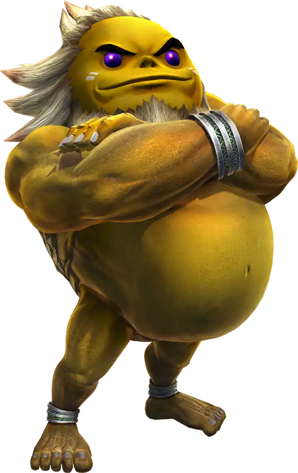 | A typical goron wears minimal clothing, has a protruding pot belly, and speaks with a deep but friendly voice. Source |
