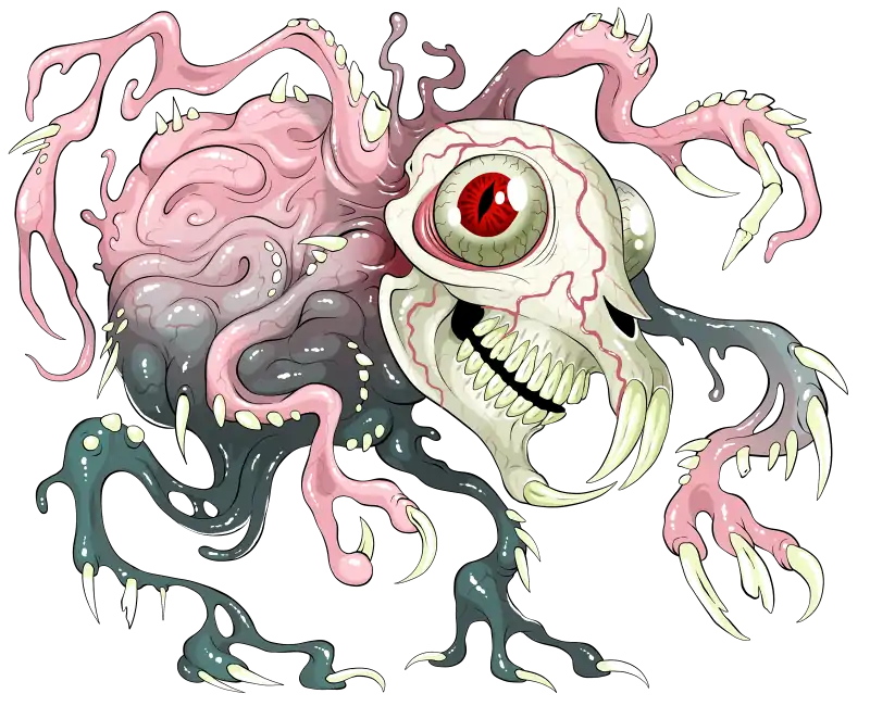 Damage Resistances bludgeoning, piercing, and slashing from nonmagical attacks Semimorphous. The gravesnitch can move through a space as narrow as 1 foot wide without squeezing. Multiple gravesnitch may fuse; when they do, they combine their current and maximum hit points, they gain a +1 ability score bonus to Strength and Constitution for each individual, and they gain +1 AC and increase by 1 size category when the number of gravesnitch quadruples (e.g. 14 AC and Medium with 4, 15 AC and Large with 16). ACTIONSMultiattack. The gravesnitch makes 4 tooth or claw attacks. Tooth or Claw. Melee Weapon Attack: +3 to hit, reach 5 ft., one target. Hit: 2 (1d2 + 1) slashing damage. Bite. Melee Weapon Attack: +3 to hit, reach 5 ft., one target. Hit: 12 (2d8 + 3) piercing damage. Skull Trap. The gravesnitch discards its skull and loses its bite attack. Whenever a creature enters a radius of 5 ft. around the skull for the first time on a turn, it must succeed on a DC 10 Dexterity save or take 11 (2d8 + 2) piercing damage. The skull has AC 11 and 8 hit points, and stops attacking after 1 hour.