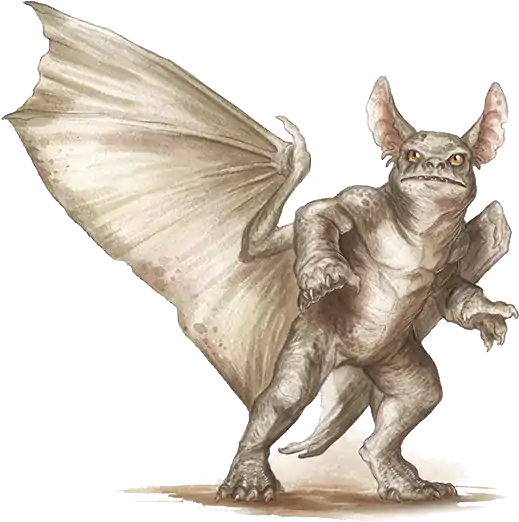 Homunculi have bat-like wings on the side of their head and a face that resembles that of a flat-faced dog: Two round eyes, a small, short snout and a wide mouth with small sharp teeth. A homunculus stands on two feet and walks and feet with six padded toes. Humanoid in stature, a homunculus also has two arms below its neck, these arms have five fingered hands, much like other humanoid races. The homunculi stand between 1 and 2 feet tall. On their backs, homunculus have two bat-like wings, with a wingspan greater than their height, usually no wider than 2 feet. Their skin is a brown-tan colour, with lighter shades on their ears, face, underbelly and wings.