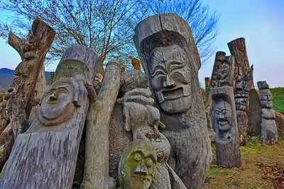 ![]() Jangseungs at Hahoe Village, Andong, Rep. of Korea. Source Jangseung is a celestial agent, either commissioned from the Upper Planes or summoned by mortals of the Material Plane, bound to a wooden pole for its activities in the Material Plane. A typical jangseung's mission is to watch over the activities of fiends and mischievous fey in a certain location, or to protect and serve the local townsfolk, keeping them safe from threats such as natural disasters or invasions. Jangseung Network. There are more than one jangseungs in the Material Plane — chances are, in some more developing communities, jangseungs can be found one for each town, and perhaps another or two between the two towns. While a jangseung is immobile because it is bound to the wooden pole, its innate power enables to locate and perceive other jangseungs within its active area. Being a celestial in essence, jangseugs form a network, complete with a chief and dedicated scribes to record the meeting. A typical jangseung network meeting is for the purpose of reporting activities and requesting supports. Bound Nature. Being bound to an inanimate pole, a jangseung does not require air, food, drink, or sleep. |