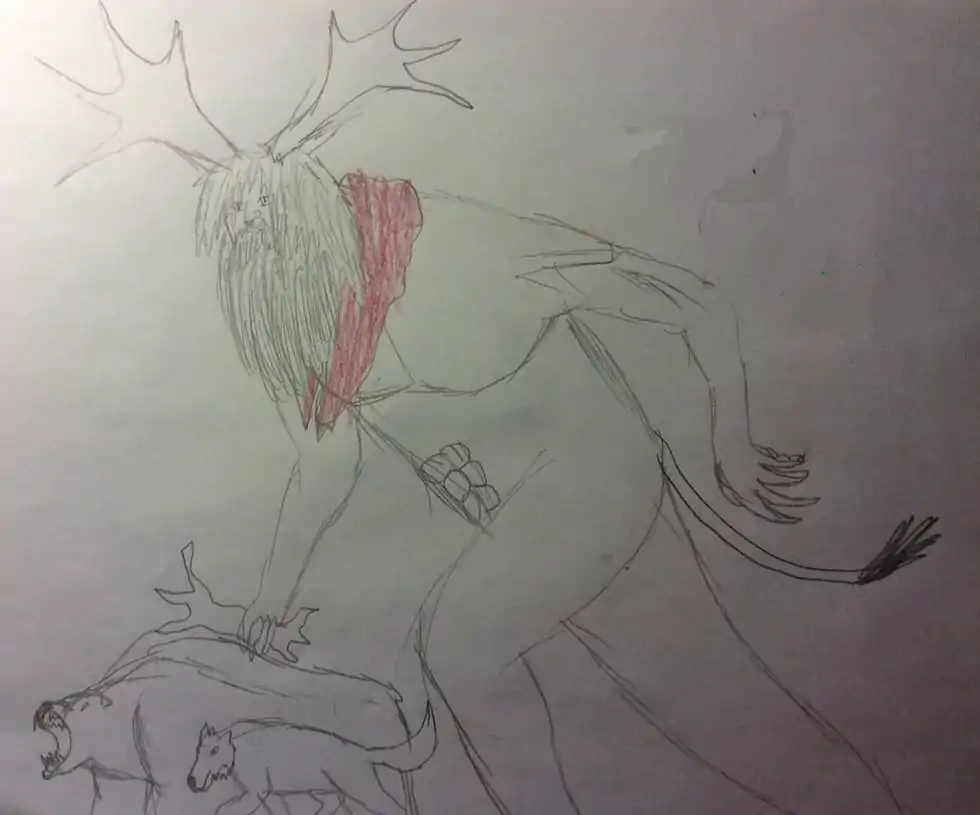 A leshy is a humanoid-esque tutelary spirit with a close bond to natural elements. They may appear as a pale peasant with backward shoes, but in their true form are similar tall satyrs with elk-like antlers and hair and beards of vine and grass. The paleness of their white skin is contrasted by the piercingness of their bright green eyes. Their blood is blue, as are their cheeks, and they do not possess a right ear. Some leshy also wear a red scarf and a left shoe on their right hoof. Forest Father. Leshy are devoted forest guardians and are not too keen on sharing territory with each other. Fights between leshy send trees to the ground and animals frightened and running. Leshy are, however, even more, protective of the forest from other beings, especially humanoids. Using their human form, leshy will warn them not to go into the woods "if you want to keep your head." That's the only warning; if not heeded, the leshy will proceed to lure them, with sounds the intruders would find familiar, to their caves, where they are either tickled to death or given a stern talking to. |