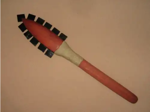 The weapon is an obsidian covered wooden shaft, similar to the Macuahuitl, although unlike it, it is much longer and has a pointed tip, making it ideal for both hacking and thrusting.