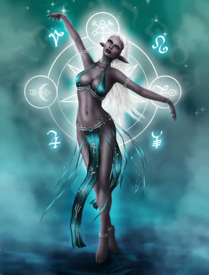 The Mystic Dancer is a weaver of motion; able to mesmerize, mystify, and terrify with their finely toned and developed motions and bodies, and are not hesitant to use their talents in more ways than one. They sway and entice with the powers of the humanoid body and pleasures of the flesh, and more often than not are mistakenly called "War Dancers" due to their ability to preform even during fierce melees. While Mystic Dancers share similar abilities to a Bard, they are more skill and assistance-focused, placing less emphasis on spells and abilities.