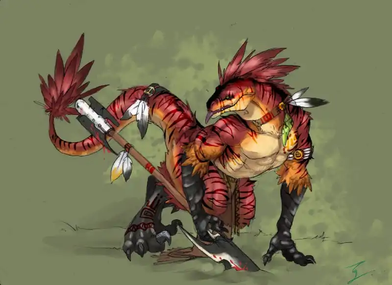 This timidness does not change the fact that, when threatened, raptorborn are capable combatants. Predatory instinct still lays behind every raptorborn's fierce intellect, and the pack mentality that otherwise allows their society to thrive through teamwork becomes a fierce weapon when turned to face a foe. Through skillful coordination and the viciousness of any assault, even a small group of raptorborn warriors can defeat larger or more numerous foes. Like lizardfolk, they are resourceful creatures and masters of their home terrain.