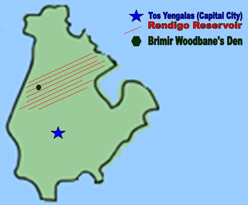 The Rendigo Reservoir is a large block of land set aside for legal hunting. Hunters the world over pay great money for a ticket into the grounds, as it houses some of the most elite skilled hunting known. About 30 percent of annual hunters are killed by their target. Rumors have it that thieves and petty criminals use the Reservoir to hide out from local law enforcement. The den of the lord of lycanthropes, Brimir Woodbane, is rumored to be within the reservoir.