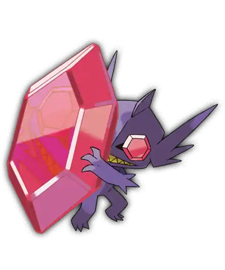 Barely reaching 2 feet tall, Sableye are tiny creatures that spend most, if not all, of their lives in caves searching for gems and rocks to eat. They typically have dark purple flesh with gemstones protruding from the back and front of it's torso with their eyes being two large pale blue gems, characteristics thought to be the result of it's diet. Their legs are short and their arms end in three fingers with spikes protruding from the elbow. On the sides of it's head are fin-like protrusions that resemble elf ears. Lastly, it's mouth is full of razor-sharp teeth.