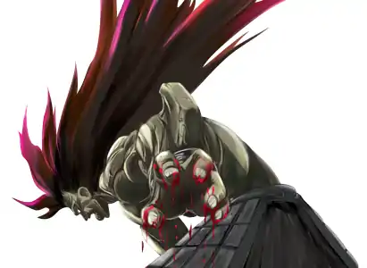 Serberus is almost always depicted as a warrior, with weapon in hand, often a Greatsword or Greataxe. In this incarnation, he is almost always depicted with an intense rage, incredibly tense muscular body, and blood is often accompanying him. He is depicted as having wild, unkempt crimson hair, and never with visible pupils.
