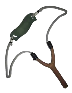 A slingshot has a strong pair of rubber bands attached to a Y shaped handle. The slingshot hurls lead bullets or stone shards. It doesn't shoot as far as a normal sling but has the advantage of increased accuracy. It is favored by druids, halflings. Your Strength modifier applies to damage rolls when you use a slingshot, just as it does with thrown weapons. You need at least two hands to use a slingshot.