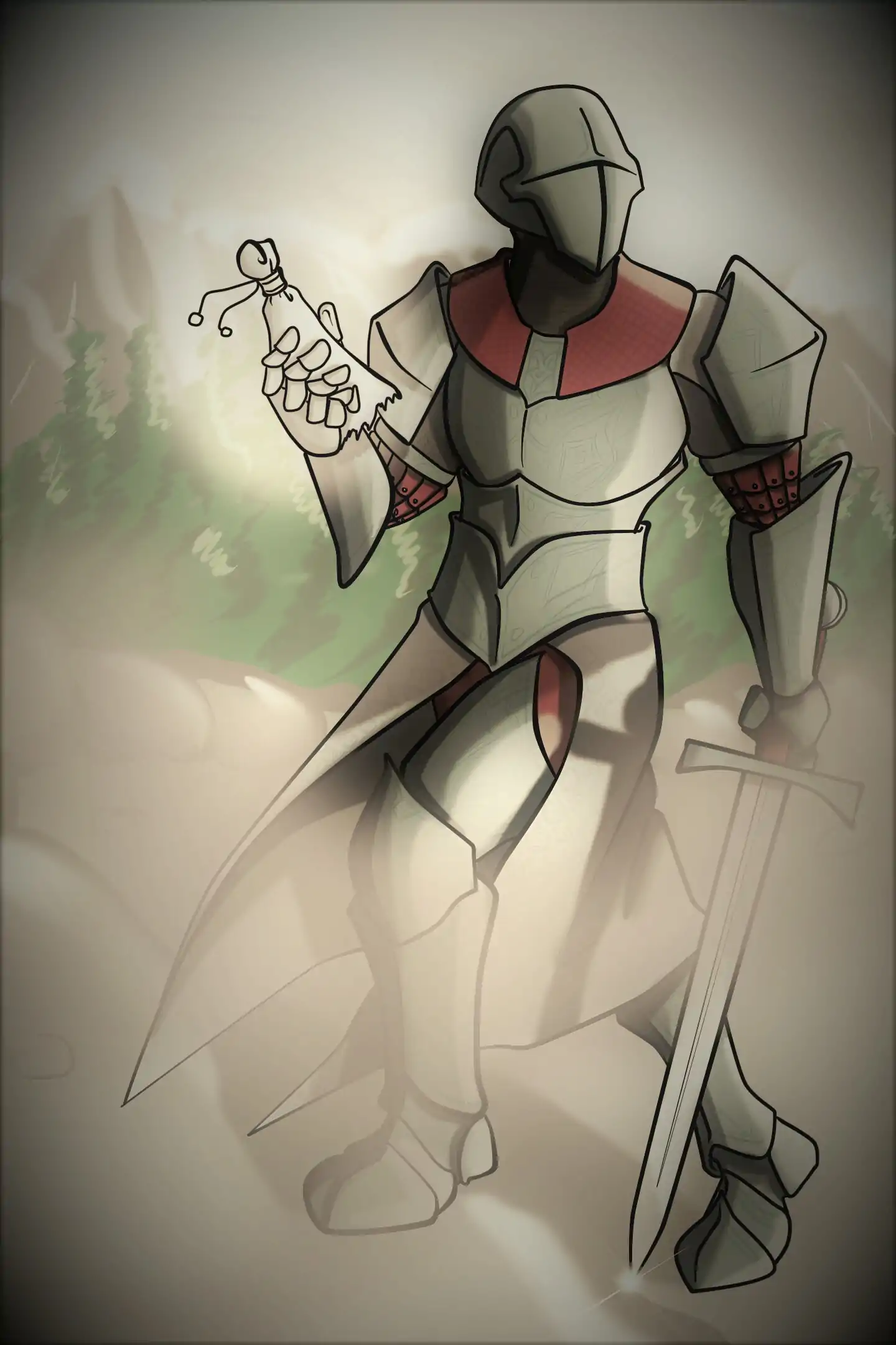 "He foresaw the end of the world, and prepared the way. Of metal and mantle did he become, along with trusted knights, immortal. In his slumber, he did not know that treasured friends would go astray. When at last he woke, as foe to old brothers, he found himself engaged in a historic battle. And a friend did raise this Lunar Blade."