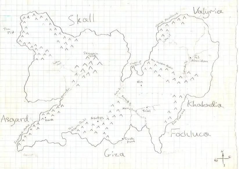 A dark and twisted place, Skall is the last stronghold of the armies of destruction. Few bastions of good are capable of existing in such inhospitable terrain, but a few do. The goblin armies patrol the blasted wasteland, and the Orcish horde throws it's might against Asgard, while the Gnoll forces hold the Sotha Gap, and the remaining Giants guard the Fist itself. This country offers a lot to an evil oriented party, but it is not limited to that. A group of good adventurers could carve out a hide-away, and sabotage the armies of evil in their attempts to conquer the free world. Here, anything is possible, and destiny calls the few strong enough to withstand the journey.