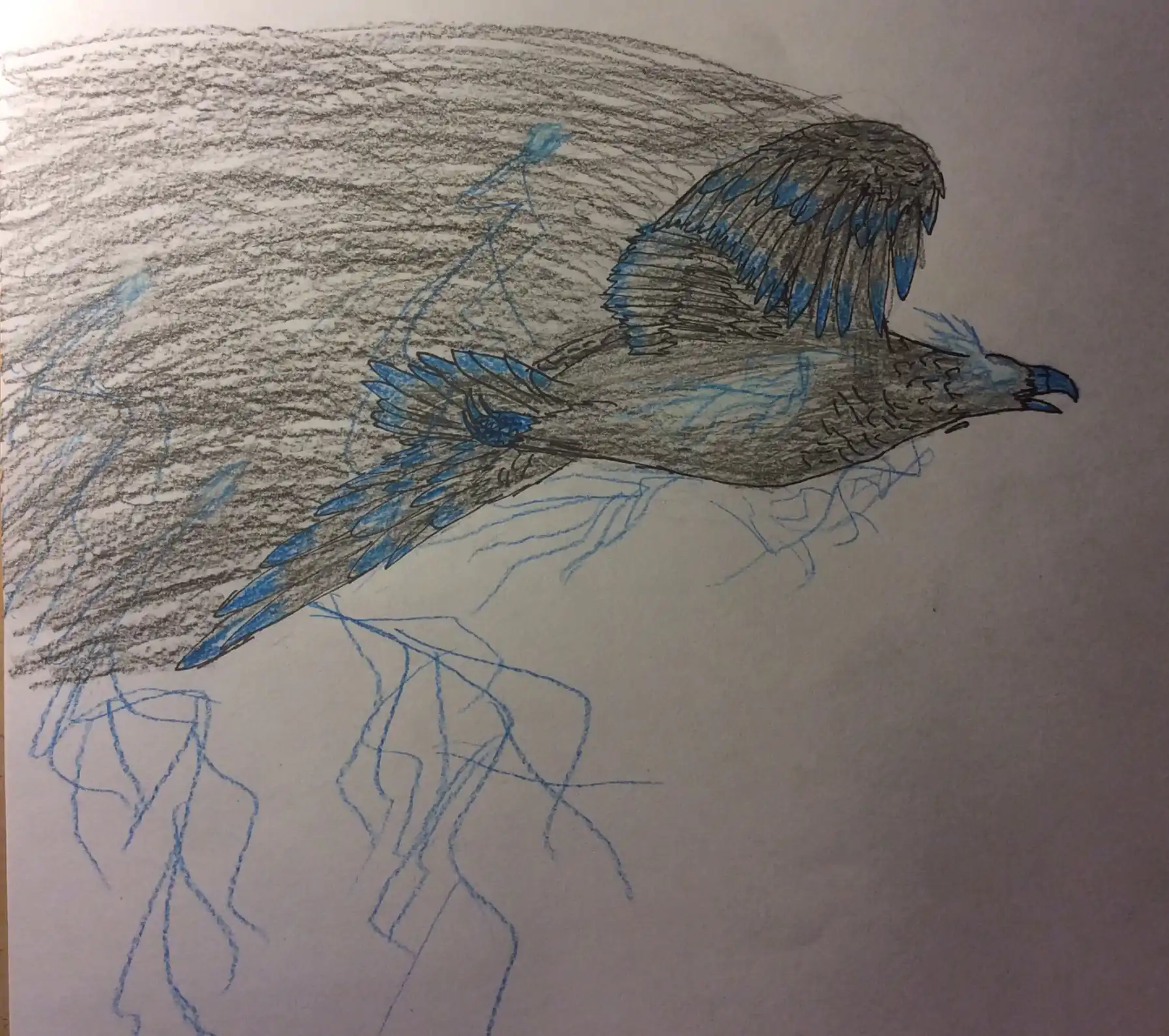 Many fear rocs for their great size, and rightfully so. However, to say that they are the greatest birds of all is far from true: there is a creature imbued with power undeniably far beyond them. They are lightning, they bring rain where they fly, the wind is their blood, storms are their creation, and their wings are thunder. For those privileged enough to bear witness to them, the breath is stolen from their lungs as they view the flight of the thunderbird. Bringers of the Rains. Thunderbirds are, in many respects, very similar to rocs: both are similar in size, appear as massive birds of prey, rest on mountain peaks, and have a taste for large animals. That is where the comparison ends, as thunderbirds are more powerful than any roc, which can be seen at even a passing glance. Their bodies are surrounded by an intercut dance of electricity and their eyes are crackling balls of lightning. When in flight, a thunderbird is surrounded by great, black thunderstorm that signals they’re near. They also wield a wide assortment of elemental magics, such as launching arcs of lightning, controlling weather patterns, and briefly transforming into bolts of lightning. Kings of the Skies. Thunderbirds dominant the skies of almost any area they lair. They prey upon only the largest of creatures mostly, like elephants and giants, but deer will do when nothing else is available. The storm that surrounds the bird when it takes flight helps to disguise it from prey most of the time, though anything of humanoid level intelligence will usually take notice if a storm cloud suddenly changes direction without any wind. A Thunderbird’s LairThunderbirds dwell on mighty mountain peaks, whose points caress the sky. Here they make their nests, the only place can reside in relative peace. Here they look upon the world without inviting unwanted attention and rest in effective harmony. Lair Actions