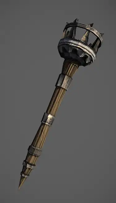 A torch mace has a short wooden haft with a weighted head, often flanged. The head is hollow, with gaps for air flow, so has less impact than a regular mace. However, it is designed to hold a bundle of hessian coated in sulfur and lime that can be ignited like a torch. It emits bright light in a 20-foot radius and dim light for an additional 20 feet. The flame persists for 1 hour and burns even in heavy rain. The materials required to make a new bundle cost 1 cp. A creature hit with a burning torch mace takes an additional 1 fire damage.