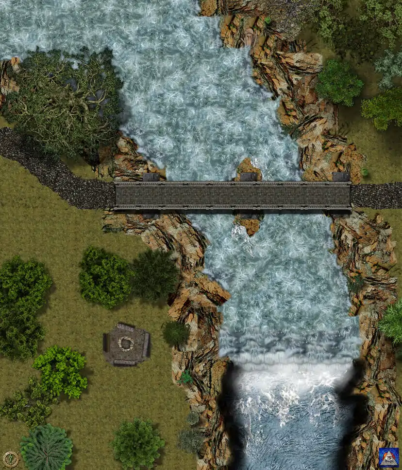 Encounter takes place while the party is nearing a bridge over a small river. The intention is to surround them on the bridge. Level 6-8