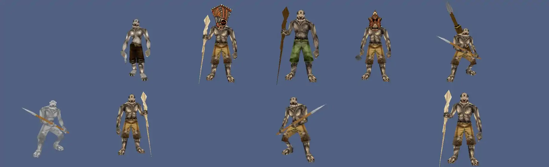 The Trynnie military is armed quite simply, with melee spears and throwing spears. The most basic unit is the drafted patrol, which has minimal training and is armed with a simple spear. Just above the patrol are the guards, which are regular soldiers who are responsible for defending the city of Trynton. The countryside is guarded by spear-throwing hunters, who are civilians who hunt animals for a living who have converted their skills for military purposes. Second-highest on the list of soldiers are the spearmen, the elite hunters who guard the temples and shamans of the Trynnie; note that all spear-throwing Trynnie use poison on their stone-tipped weapons. Highest on the list of soldiers are the Champions, who are armed with only a spear, but possess great skill and can outmaneuver most opponents.