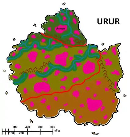 Urur’s dominant geographical feature is the massive desert that takes up much of the continent’s southern half. The continent’s northernmost regions are mostly temperate, but the continent as a whole is characterized by hot weather. The people of Urur make a great deal of effort to accommodate the overbearing heat and the blazing sunlight.