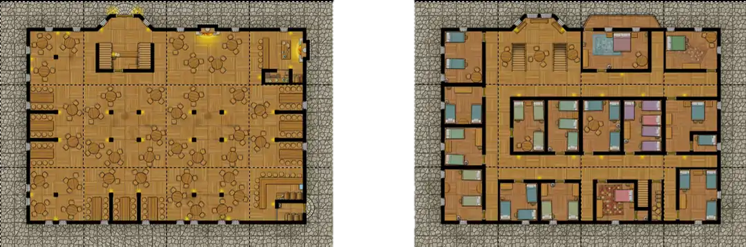 Now that the PCs are inside the city, they will need a place to stay. As much as they ask around, nobody will tell them a thing. But, if a player asks a guard, the guard will say: "Go to Baldur, he's the inn keep around these parts. But watch yourself approaching us, next time could be fatal."Baldur's Inn can be found near the city gates, toward the front of the city. Once entering Baldur's Inn, a lady by the name of Elysia will greet the party: "Hello, I'm Elysia, how can help y'all, tonight?" The players can say they each need rooms or pair up. Elysia will say: "Sorry, but you'll have to wait a few hours, they're being cleaned up right now. We have a pub over here. now, take care." The players can rest at the pub area or leave and go shop around places. But if a player tries to interact with someone else, the NPC will ignore them and walk away.