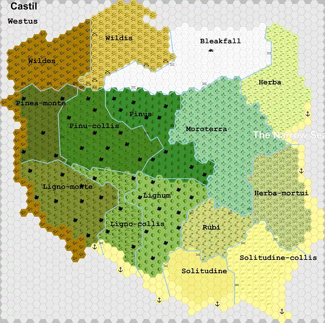 Westus is located on the sub-continent of Castil. It is inhabited mainly by natural races and has the most connections to the Faelands. Westus has constantly waged war against Alkiris by using fae crossings. It has harsh winters and warm summers.