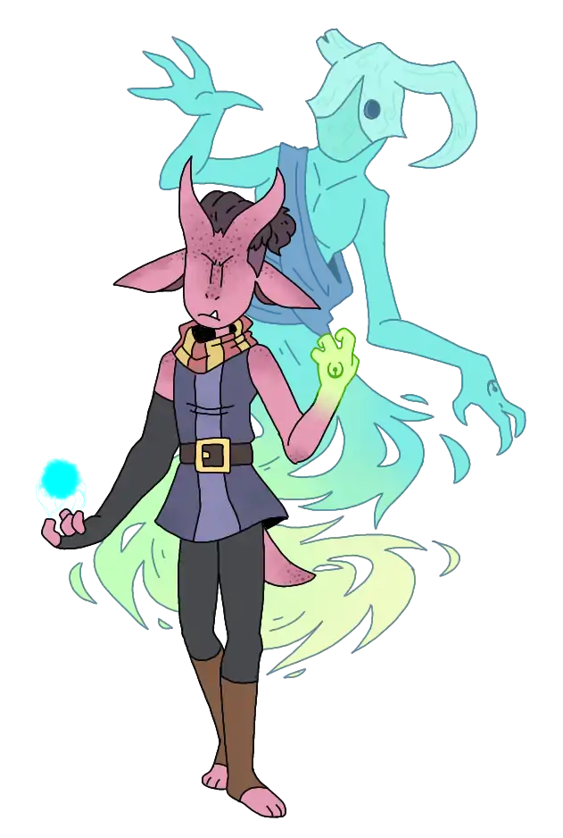 Their guardians, known as Confirans, were given by their mighty hero who took down Abassel. Confirans come in many shapes and forms, often taking the shape that revolves around a proficiency they may be good at as well as the Ylvran's alliance. They appear otherworldly, varying from looking humanoid to looking monstrous. They glow entirely of one or a pallete of colors. They are usually close to their users unless they were seperated in some way. If this is to happen, both the Ylvran and the Confiran must find eachother in some way. Sleeping or meditating is a way of connecting the two easily (If they have a good bond).