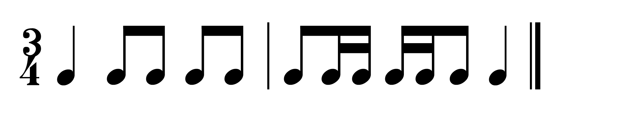 In this example, the eighth notes are not grouped with beams, making it difficult to interpret the triple meter.
