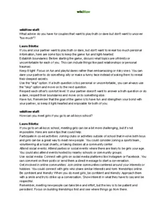 This article was written by Laura Bilotta and by wikiHow staff writer, Kyle Smith. Laura Bilotta is a Dating Coach, Matchmaker, and the Founder of Single in the City, her dating and relationship coaching service based in Toronto, Ontario, Canada. With over 18 years of experience, she focuses on helping singles date more intentionally, encouraging them to let go of negative patterns so that they can attract the love that they deserve. Her experience, skills, and insights have led to thousands of successfully united over 65,000 singles through events and one-on-one matchmaking coaching sessions. She has been the host of The Dating and Relationship Show on Global News Radio 640 Toronto (AM640) for 6 years and is known as The Hookup Queen of Clubhouse; her popular singles club, Single in the City, has over 95.5K members who regularly join in weekly dating and relationship-focused rooms.