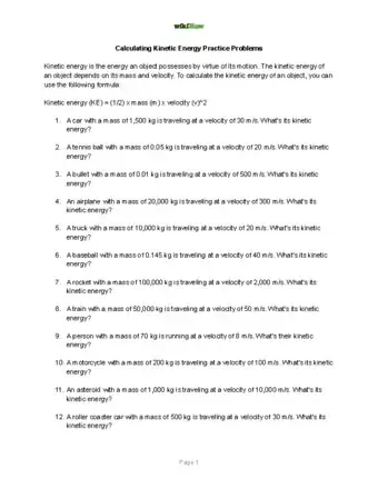 - Example 2: What is the mass of an object with a kinetic energy of 100 J and a velocity of 5 m/s?