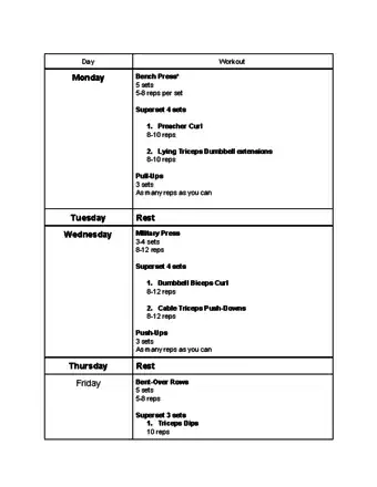 Tip: On the days when you aren't training your arms, train other muscle groups in your legs, back and abdomen. This way you'll still be building strength while your arm muscles are recovering.