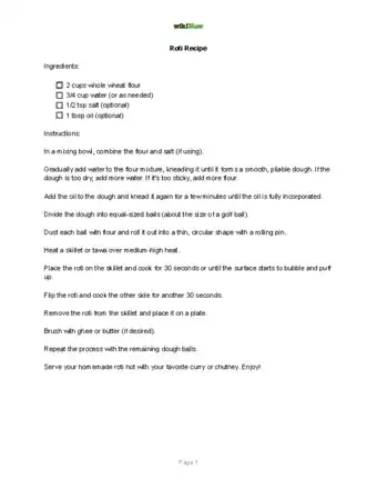 Roti is a round, flat, unleavened Indian bread. While most Indian restaurants serve naan (a leavened flatbread made with a yeast starter and white flour which is typically cooked in a tandoor oven[1] ), roti is typically made with wheat flour and cooked on a hot griddle.[2] It's an everyday bread that's made fresh and eaten with curries, chutneys, and various other Indian dishes. Indeed, roti is often used as a utensil to scoop up other food. It's a delicious, versatile, and surprisingly easy-to-make bread you can bake at home yourself. This recipe will make 20-30 rotis.