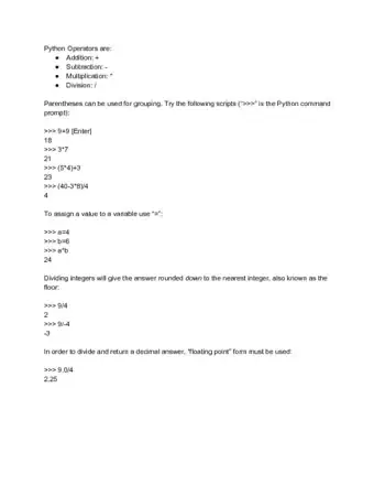 Performing some basic calculator functions will help get you familiar with Python syntax and the way numbers and strings are handled.