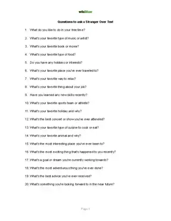 1. Once you’ve talked for a bit, bypass the small talk and go deeper. People want to connect with others, and they might be more willing to tell you about their life than you think. The benefit of asking open-ended questions is that it gives the other person a chance to share more information and move the conversation in a direction they’re interested in. Studies even show that asking questions boosts how the other person feels about you and leaves a positive impression.[17] Try out some of these questions:[18]