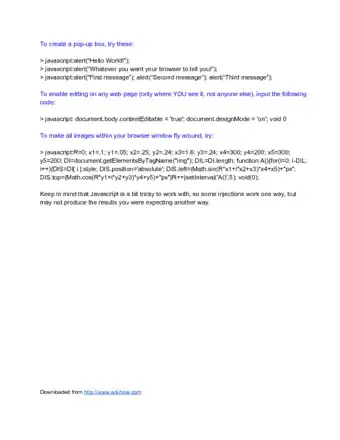 JavaScript injection is a process by which we can insert and use our own JavaScript code in a page, either by entering the code into the address bar, or by finding an XSS vulnerability in a website. Note that the changes can only be seen by you and are not permanent. This is because JavaScript is a "client-side" language.