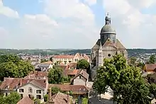 The Romans conquered the area in 52 BC and began their settlement on Paris's Left Bank.[13] It became a prosperous city with a forum, baths, temples, theatres, and an amphitheatre.[14] Christianity was introduced in the middle of the 3rd century AD by Saint Denis, the first Bishop of Paris. According to legend, when Denis refused to renounce his faith before Roman authorities, he was beheaded on the hill that became known as Mons Martyrum (Latin "Hill of Martyrs"), later "Montmartre". The legend further states that Denis walked headless from this hill to the north of the city. The place that he finally fell and was buried became an important religious shrine, the Basilica of Saint-Denis.[15]