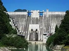 The Ōmachi Dam is a concrete gravity dam on the Takase River just west of Ōmachi in Nagano Prefecture, Japan. Construction of the dam began in 1975 and it was completed in 1985. The primary purpose of the dam is water supply and it also supports a 13 MW hydroelectric power station.[3] It is owned by TEPCO.[1]