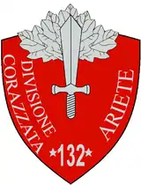 The 132nd Armored Division "Ariete" (Italian: 132ª Divisione corazzata "Ariete") was an armored division of the Royal Italian Army during World War II. It was formed in 1939 as the second armored division after the 131st Armored Division "Centauro". The division fought in the Western Desert Campaign until being destroyed during the Second Battle of El Alamein and declared lost due to wartime events on 8 December 1942.[1]