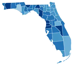 | Alachua | 1,367 | 80.27% | 326 | 19.14% | 10 | 0.59% | 1,703 |