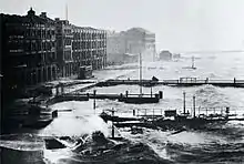 The 1906 Hong Kong typhoon was a tropical cyclone that hit Hong Kong on September 18, 1906. The natural disaster caused property damage exceeding a million pounds sterling, affected international trade,[1] and took the lives of around 15,000 people.[2]