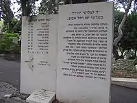 The sign placed in the victims' compound of the Tel Aviv deportation in Kfar Saba.
