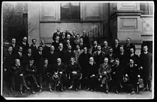 The First Dáil Éireann photo taken at the Mansion House on 10 April 1919