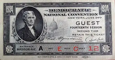 - ↑ Official Report of the Proceedings of the Democratic National Convention, published by the Democratic National Committee (1924), p. 45