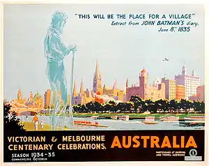 - ↑ "Poster, Victoria and Melbourne Centenary Celebrations". City of Melbourne. Retrieved 12 December 2019.