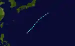 The scope of this article is limited to the Pacific Ocean, north of the equator and west of the international date line. Storms that form east of the date line and north of the equator are called hurricanes; see 1945 Pacific hurricane season. Predecessor agency to the Joint Typhoon Warning Center (JTWC), Fleet Weather Center/Typhoon Tracking Center was established on the island of Guam in June 1945, after multiple typhoons, including Typhoon Cobra in the previous season and Typhoon Connie in this season, had caused a significant loss of men and ships.[1][2] It would not take major responsibility in the West Pacific basin until 1950 season.[1] Instead, storms in this season are identified and named by the United States Armed Services, and these names are taken from the list that USAS publicly adopted before this season had started earlier this year.[3][4] Since this is the first season to be included in the West Pacific typhoon database, this would also be the first season where the names of Western Pacific tropical cyclones are preserved publicly.