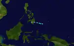 Tropical Storm Irene formed on November 30 between the Philippine Islands. It strengthened to a tropical storm with 50 mph winds before it made landfall on one of the islands. It curved northeast and weakened to a tropical depression. But after exiting land, it restrengthened to a moderate tropical storm. But shortly thereafter, it became extratropical on December 3. The Japan Meteorological Agency analyzed it as a tropical depression, though it was actually a moderate tropical storm.